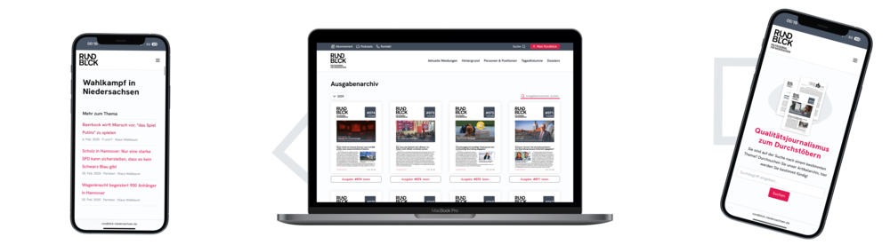Die Art, wie wir ihn umgesetzt haben. Mit dem Team des Rundblicks arbeiten wir von Anfang an eng zusammen – und genau das hat sich ausgezahlt. Von der Konzeption über das Design bis zur technischen Umsetzung lief die Kommunikation offen, schnell und lösungsorientiert. So entsteht kein „typisches Agenturprojekt“, sondern eine Lösung, die passt. Zu den Menschen dahinter. Zu den Leser:innen. Und zu den Anforderungen von heute und morgen. Mit dem Relaunch hat der Rundblick Niedersachsen jetzt genau das, was er braucht: eine starke digitale Plattform, die journalistische Qualität sichtbar und nutzbar macht.